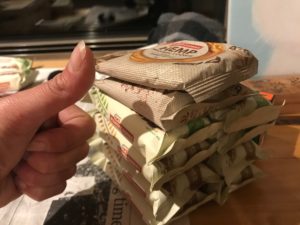 - 1 evening meal (I’ve done everything from instant noodles to full deluxe real-food – it just depends what you like, and how much you’re prepared to carry!)