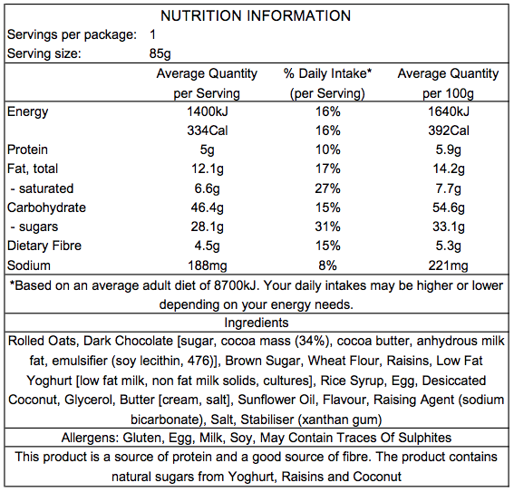 Original Sports Cookie Nutrition Info
